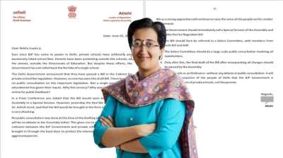 फीस रेगुलेशन पर आर-पार: आतिशी ने सीएम को पत्र लिखकर जनता की भागीदारी सुनिश्चित करने को कहा