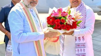 जयपुर, 13 अक्टूबर। केंद्रीय गृह एवं सहकारिता मंत्री श्री अमित शाह के जयपुर आगमन पर सोमवार को मुख्यमंत्री श्री भजनलाल शर्मा ने एयरपोर्ट पर पुष्पगुच्छ भेंट कर उनका हार्दिक स्वागत...
