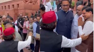 अखिलेश यादव ने संसद में रोककर मिलाया CM मोहन यादव से हाथ