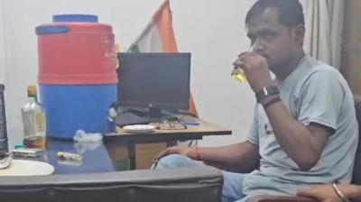 रीवा के ऑफिस में शराब पीते बाबू का वीडियो वायरल