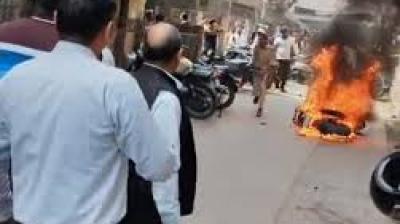 कोर्ट परिसर के नजदीक बाइक में लगी आग, चालक ने कूदकर बचाई जान