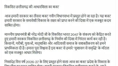 रायपुर। मुख्यमंत्री विष्णु देव साय ने वित्त वर्ष 2026-27 के लिए प्रस्तुत होने जा रहे छत्तीसगढ़ के बजट को प्रदेश के समग्र विकास की दिशा में एक महत्वपूर्ण कदम बताया...