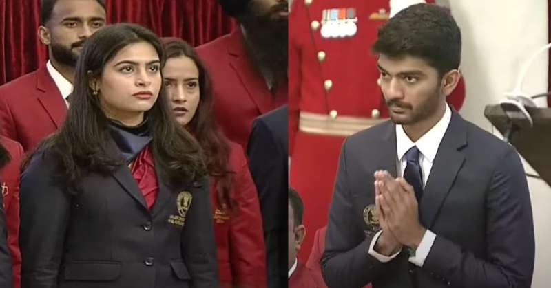 राष्ट्रीय खेल पुरस्कार समारोह में मनु भाकर और डी गुकेश को मिला मेजर ध्यानचंद खेलरत्न सम्मान