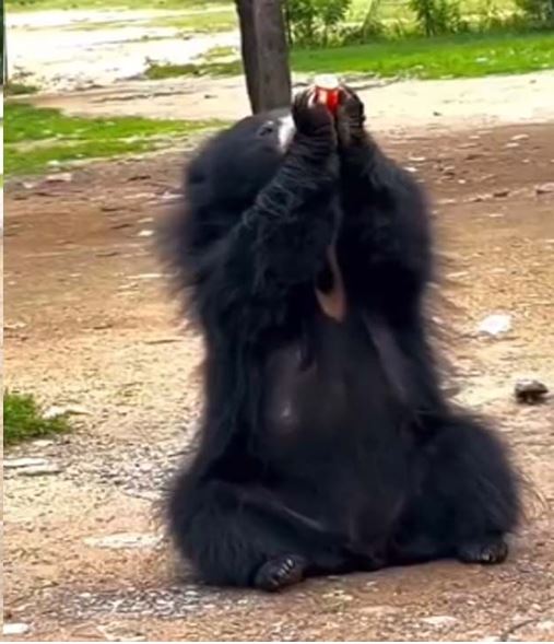 जंगल में अनोखा नज़ारा: भालू ने माजा की बोतल उठाई और गटागट पी गया, वीडियो देख यूज़र्स के मज़ेदार रिएक्शन