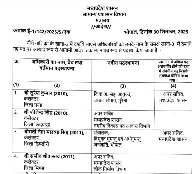 मोहन सरकार का जंबो तबादला: 24 IAS अधिकारियों को नई पोस्टिंग, 10 कलेक्टर हटे