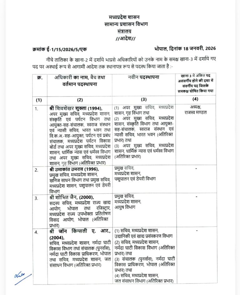 MP में बड़ा प्रशासनिक फेरबदल, 26 वरिष्ठ IAS अधिकारियों के हुए तबादले, इलैयाराजा टी को पर्यटन विभाग की कमान